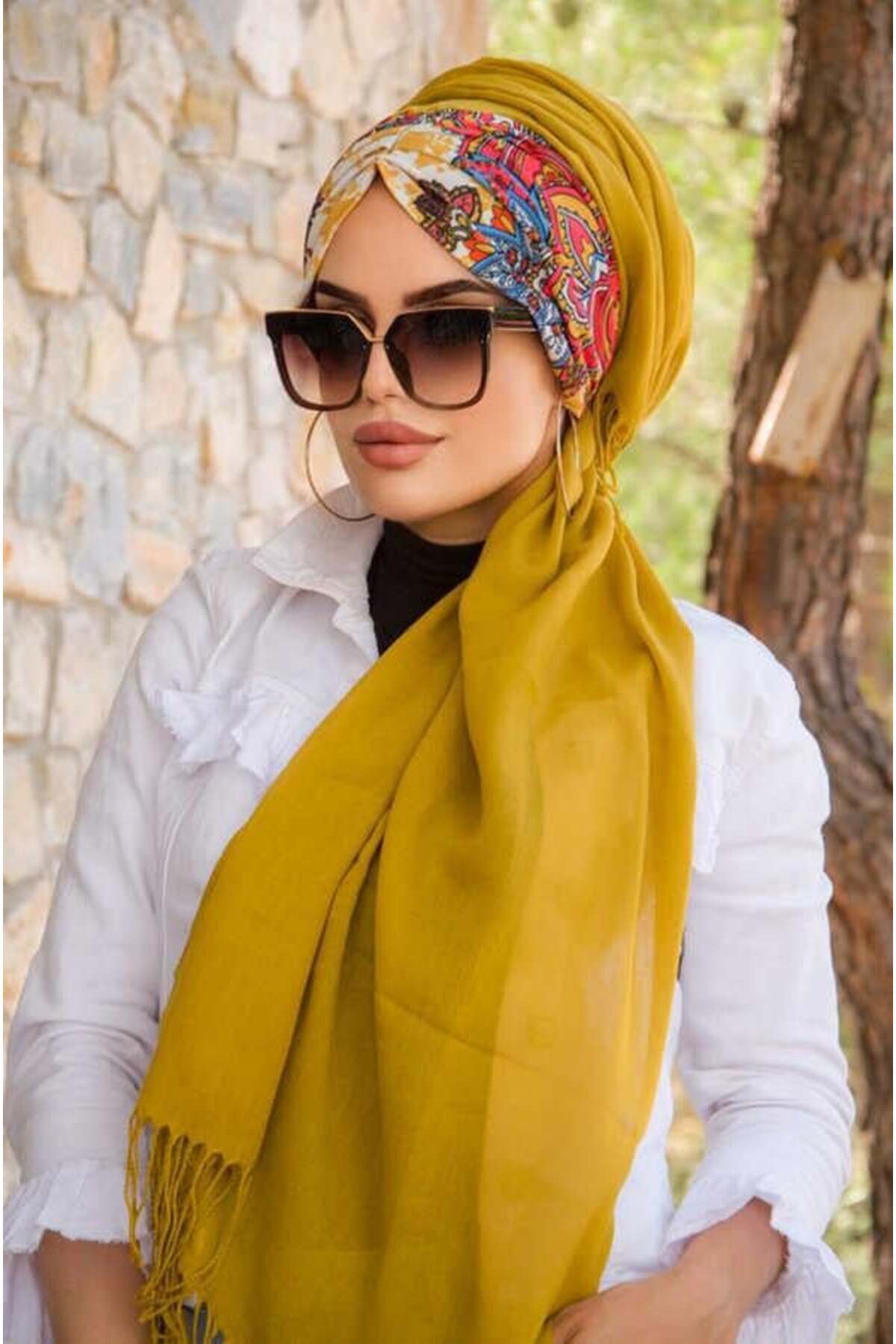 Haki Etnik Desen Büzgülü Hazır Şal Haki Etnik Desen Büzgülü Hazır Şal 50601ETNIK Standart