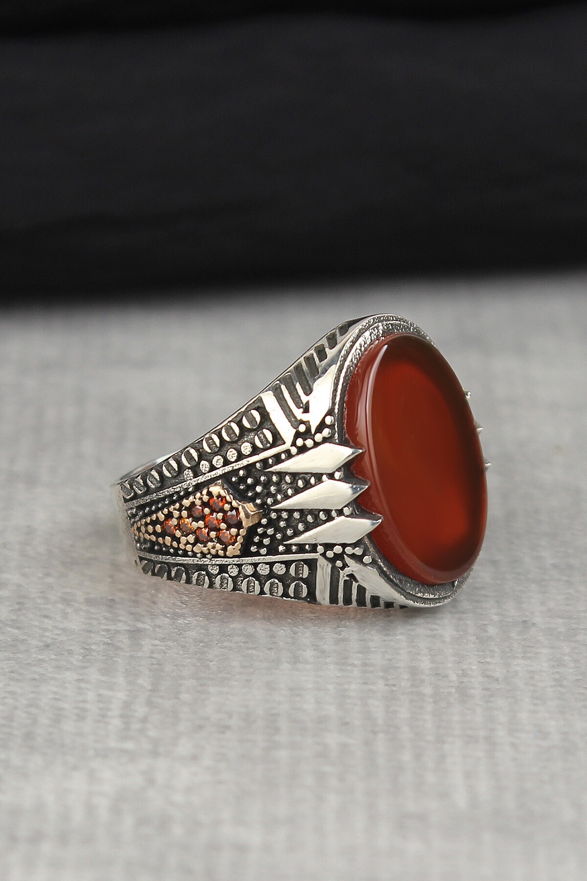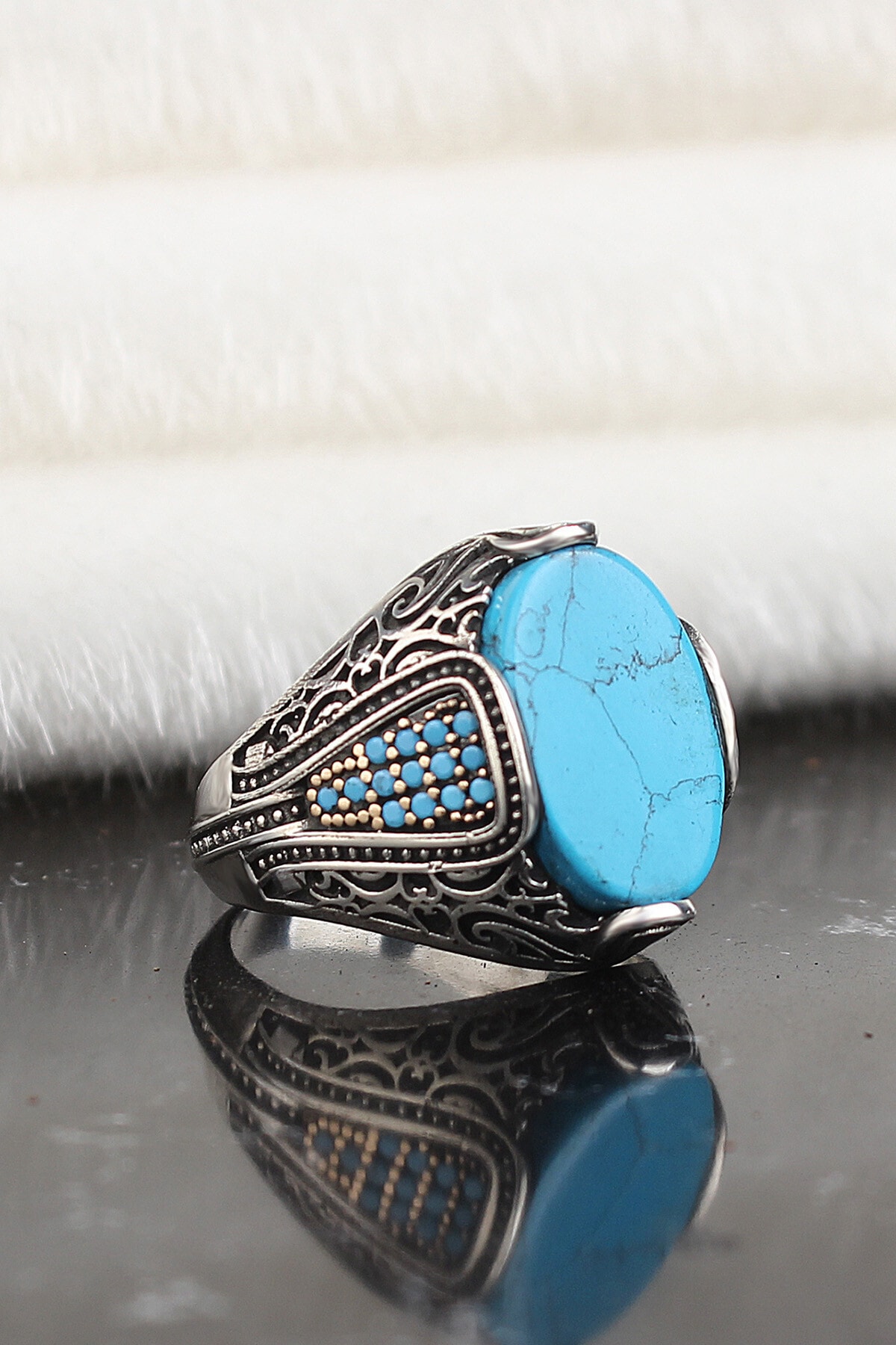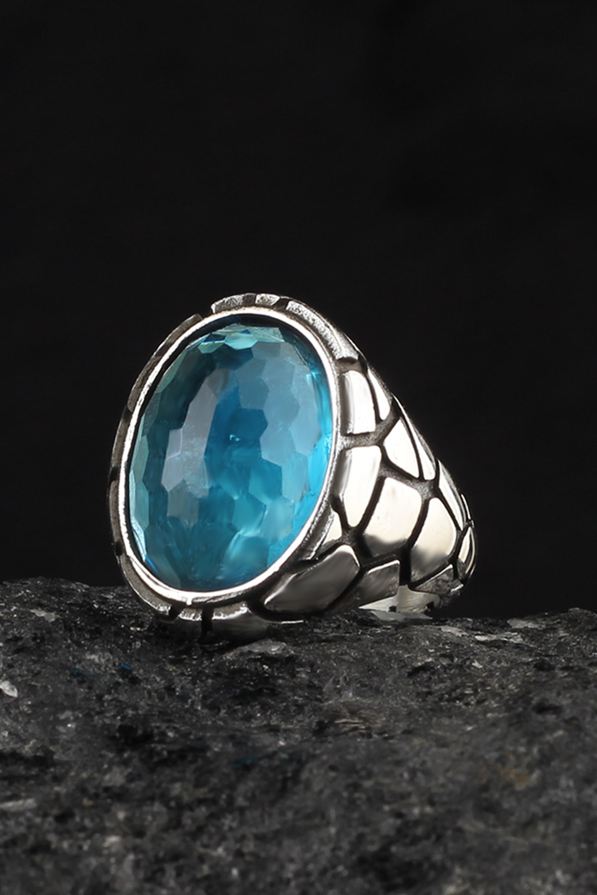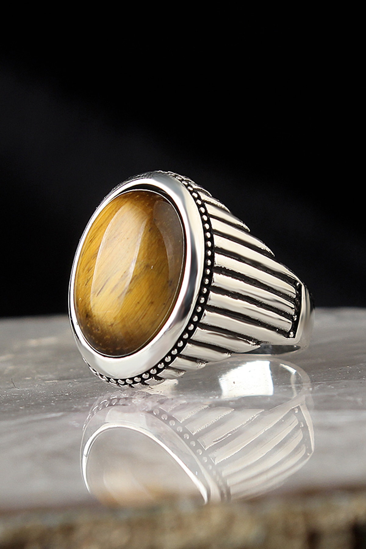Zincir Serisi 925 Ayar KaplanGözü Taşlı Erkek Gümüş Yüzük Zincir Serisi 925 Ayar KaplanGözü Taşlı Erkek Gümüş Yüzük tegy-1385 35