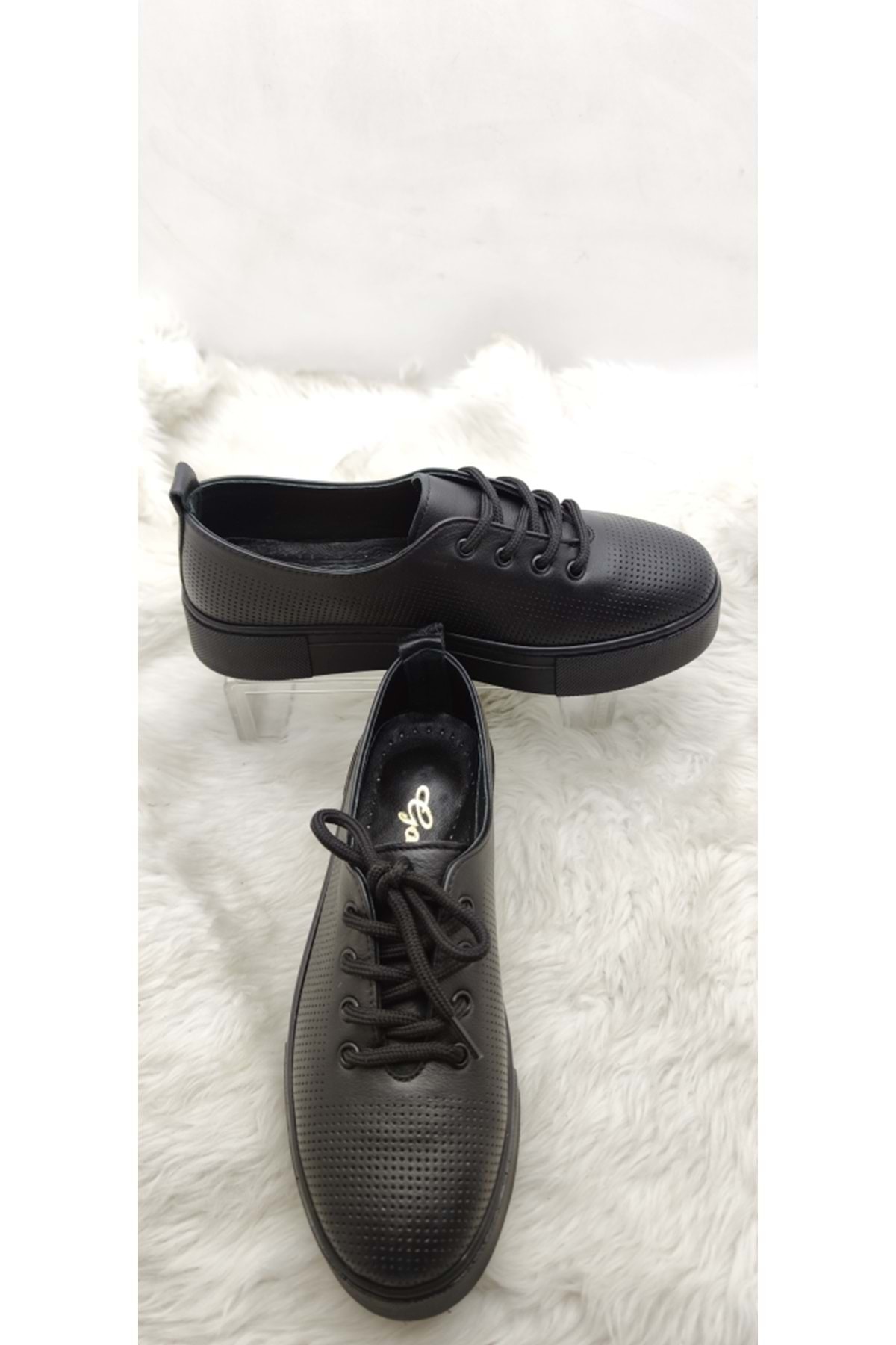 Çiğdem Siyah Deri Kalın Taban Spor Ayakkabı (GSO) Çiğdem Siyah Deri Kalın Taban Spor Ayakkabı (GSO) ST02658 40