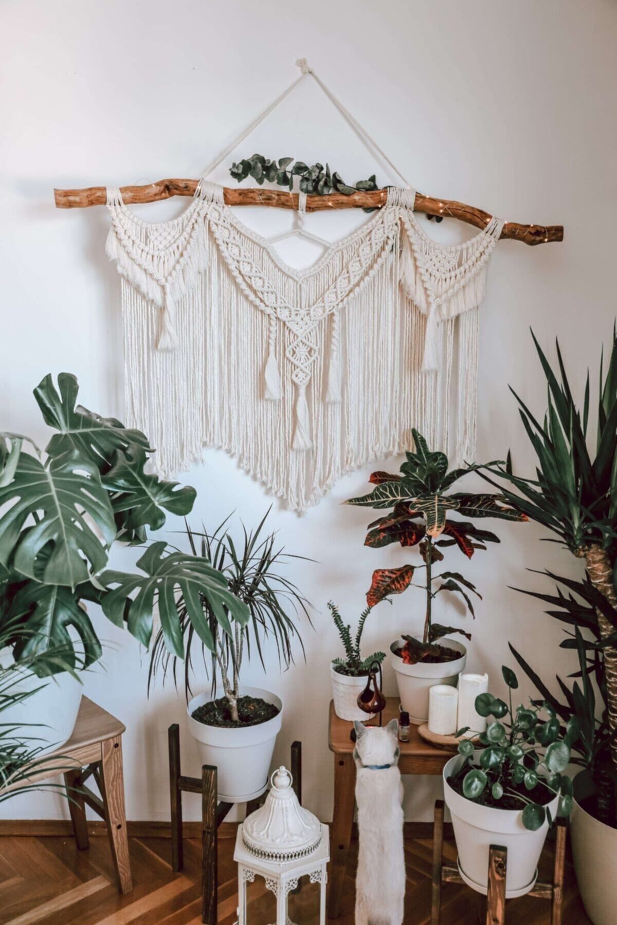 Yapraklı makrome duvar süsü Yapraklı makrome duvar süsü mkrm27271 70 x 70