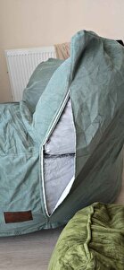 02.08 tarihinde ürünleri teslim aldık. Vakumlu ve kılıflı olarak gönderildi. Kılıftan çıktıktan sonra ürünün fotoda görüldüğü gibi boydan boya yırtık olduğunu gördük. Ürün değişim talebinde bulunduk, söz konusu yırtık sadece ürünün mavi kılıfında. Bu nedenle firmaya değişim için sadece bir mavi kılıf göndermelerinin yeterli olacağını da belirttik. Değişim yapacaklarını 07.08 tarihine kadar bize ürünün kargo kodunun gönderileceğini söylediler. Bekledik. 07.08'te hala ses çıkmayınca tekrar yazdık. Ancak bu sefer bizi 5 gün beklettikten sonra ürünü değiştiremeyeceklerini söylediler, mecburen iade sürecine giriştik. Yazık gerçekten hem hatalılar hem ilgisizler. Kusurlu gönderdikleri ürünün arkasında bilr durmayan bir firma.