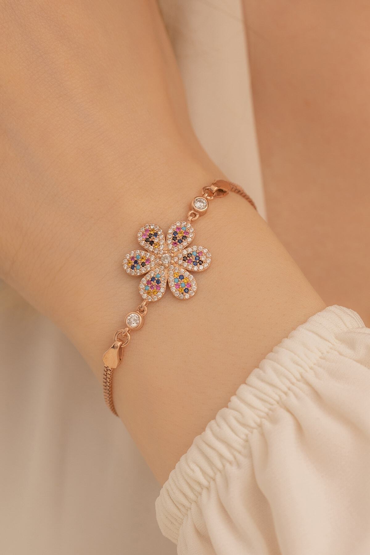 Mix Karışık Çok Renkli Doğal Taşlı Rose Gold Gümüş Çiçek Motifli Kadın Bileklik Mix Karışık Çok Renkli Doğal Taşlı Rose Gold Gümüş Çiçek Motifli Kadın Bileklik gmşrnklççkmtfl 18