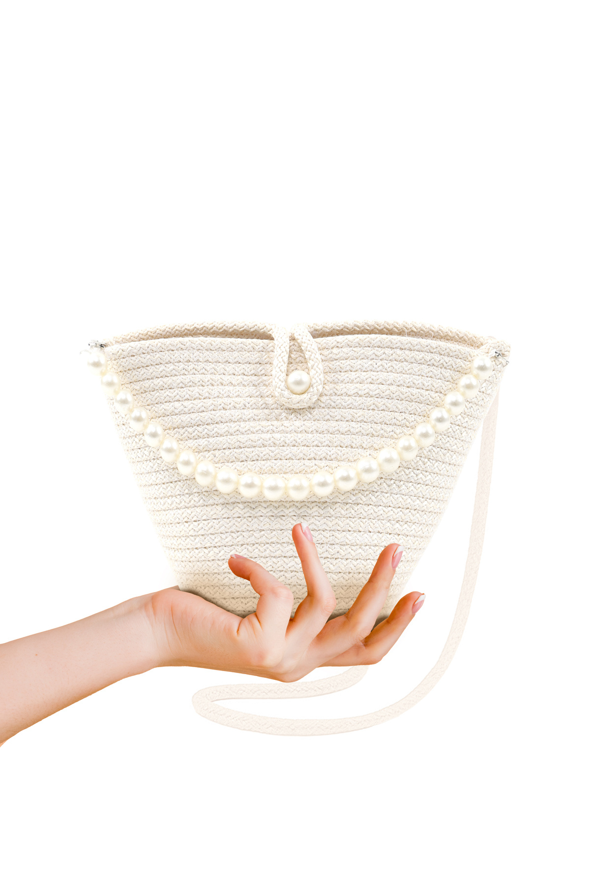 Kadın Bej İncili Tasarım Omuz Çantası Kadın Bej İncili Tasarım Omuz Çantası LTHR889 1