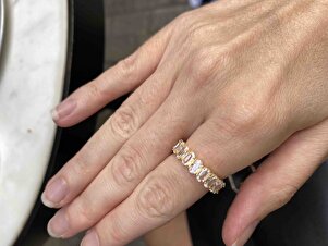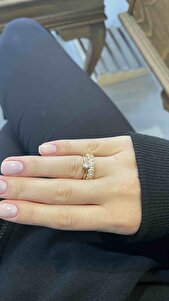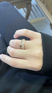 Gümüş altın yaldızlı oval baget kesim zirkon taşlı tamtur yüzük SGTL12218GOLD Gümüş altın yaldızlı oval baget kesim zirkon taşlı tamtur yüzük SGTL12218GOLD 22
