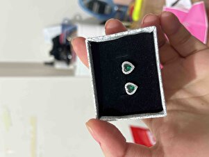 Gümüş Rodyumlu Pırlanta Modeli Kök Zümrüt Taşlı Kalp Küpe SGTL10051YESIL Gümüş Rodyumlu Pırlanta Modeli Kök Zümrüt Taşlı Kalp Küpe SGTL10051YESIL تک سایز