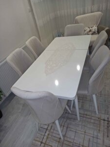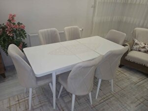 Astera Serisi Açılabilir Masa + 6 Adet Krem Baby Face Kumaş Mutfak Salon Yemek Odası Takımı Astera Serisi Açılabilir Masa + 6 Adet Krem Baby Face Kumaş Mutfak Salon Yemek Odası Takımı Asteratakım12 تک سایز