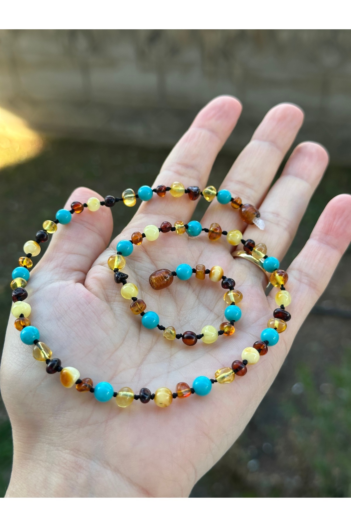 Kehribar Kolye Baltık Damla Kehribar Bebek Firuzeli Diş Kolyesi Orijinal Sertifikalı Kehribar Kolye Baltık Damla Kehribar Bebek Firuzeli Diş Kolyesi Orijinal Sertifikalı MODEL21 0-4 Yaş
