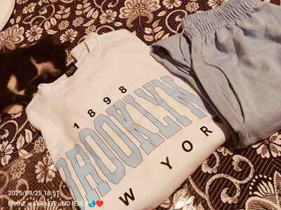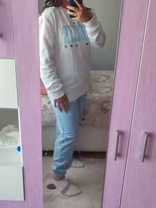 Brooklyn Eşofman Takımı Beyaz Sweatshirt Bebe Mavi Jogger - Baskılı Oversize Şardonlu Bisiklet Yaka Brooklyn Eşofman Takımı Beyaz Sweatshirt Bebe Mavi Jogger - Baskılı Oversize Şardonlu Bisiklet Yaka BRKLYNKISLIKTAKIM-DBBT XL