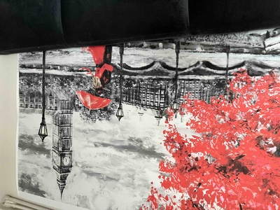 Kırmızı Romantik Duvar Kağıdı, Saat Kulesi Duvar Resmi Kırmızı Romantik Duvar Kağıdı, Saat Kulesi Duvar Resmi LOA614 101 x 63
