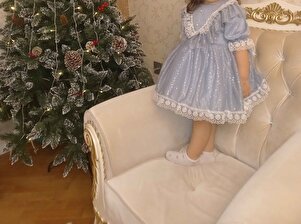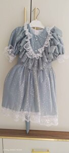 Bebe Mavisi Danteli Kız Çocuk Elbisesi Bebe Mavisi Danteli Kız Çocuk Elbisesi SRUTEYUTY 10 Yaş
