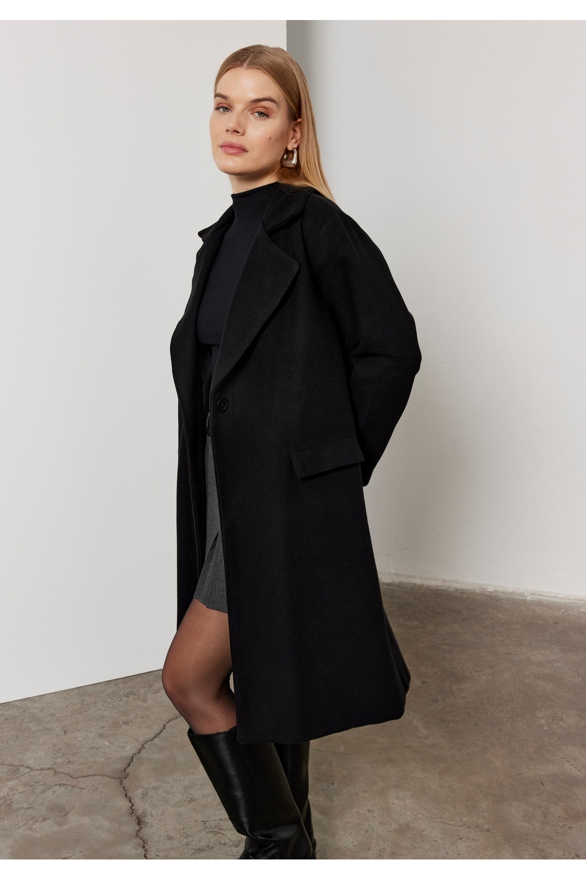 Kadın Siyah Uzun Astarlı Kaşe Kaban / Collection Kadın Siyah Uzun Astarlı Kaşe Kaban / Collection SU-0001 XL