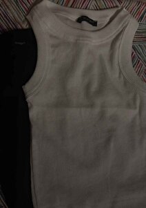 2'li Fitted/Vücuda Oturan Geniş Biyeli Halter Yaka Fitilli Esnek Örme Crop Bluz Set 2'li Fitted/Vücuda Oturan Geniş Biyeli Halter Yaka Fitilli Esnek Örme Crop Bluz Set ZRModelSet XL