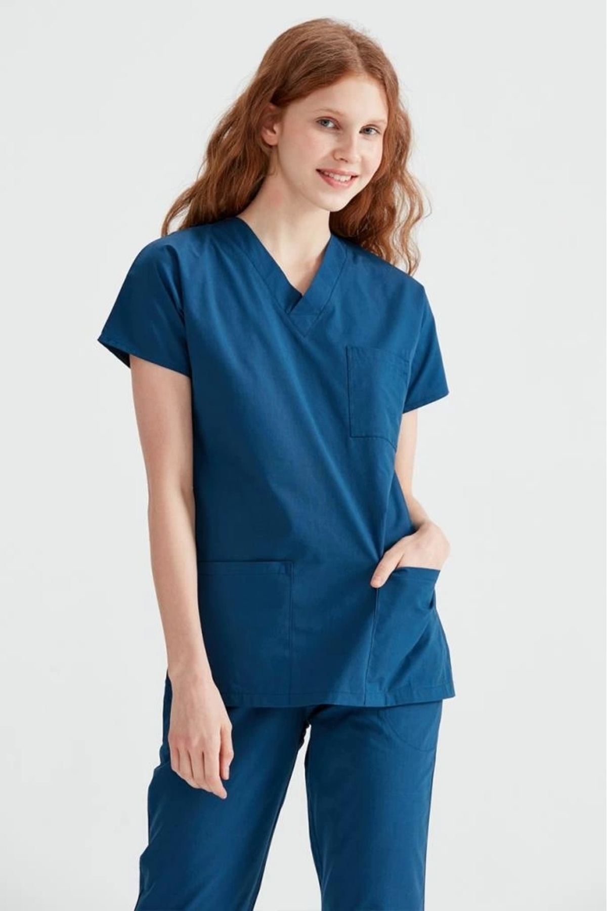 İndigo Mavi Tek Renkli Likralı Kumaş Cerrahi Takım V Yaka Forma İndigo Mavi Tek Renkli Likralı Kumaş Cerrahi Takım V Yaka Forma MOODA863 2XL