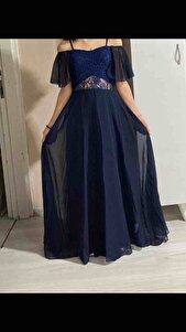 Dantelli Şifon Abiye Lacivert MDV330 Dantelli Şifon Abiye Lacivert MDV330 15-16 Yaş