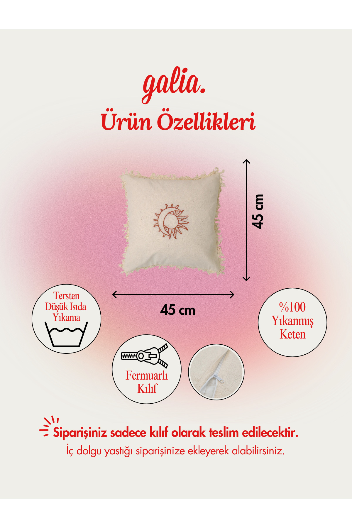 - Yıkama Talimatı : DÜŞÜK DEVİR DÜŞÜK SICAKLIK