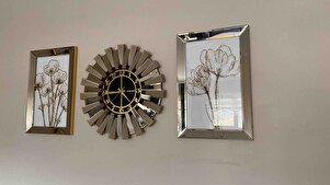 Aynalı Gelincik Tablo ve Güneş Saat Set Aynalı Gelincik Tablo ve Güneş Saat Set PH19 40 x 62