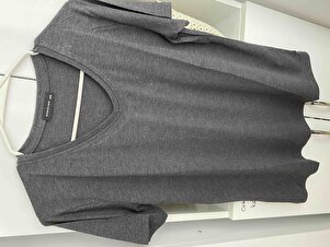 süper kalite Antrasit V yaka kadın tişört düz renk basic organik pamuk örme penye t-shirt süper kalite Antrasit V yaka kadın tişört düz renk basic organik pamuk örme penye t-shirt 401 XS