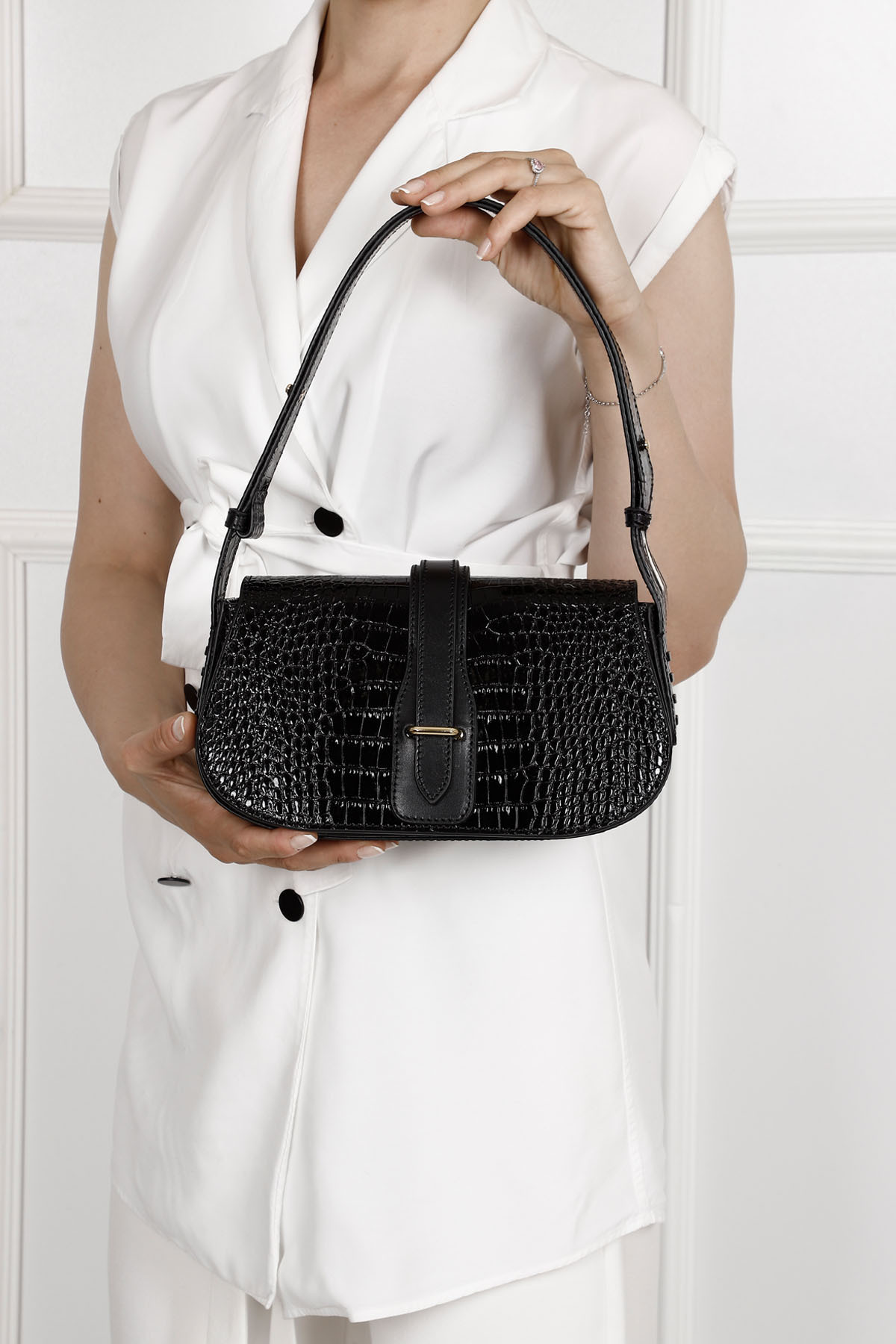 Kadın / Kız Siyah Krako Hakiki Deri El ve Omuz Çantası Kadın / Kız Siyah Krako Hakiki Deri El ve Omuz Çantası DDZW002K8381 Standart