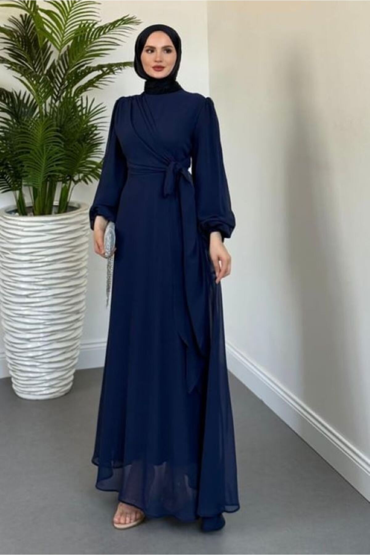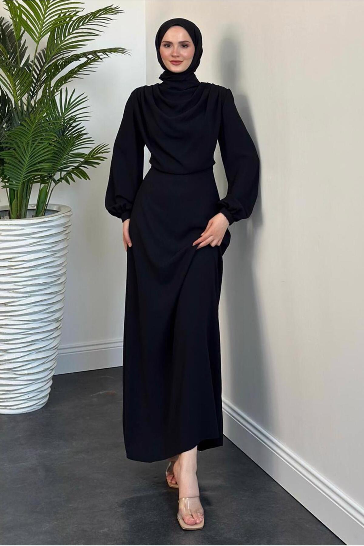 Beli Kuşaklı Kol Nakışlı Tesettür Elbisesi - Siyah-42 - Siyah Beli Kuşaklı Kol Nakışlı Tesettür Elbisesi - Siyah-42 - Siyah kolnakışlıelbs 48