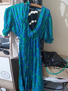 Kadın Kolu Lastikli Multi Desenli Kuşaklı Elbise Kadın Kolu Lastikli Multi Desenli Kuşaklı Elbise 40921040 L
