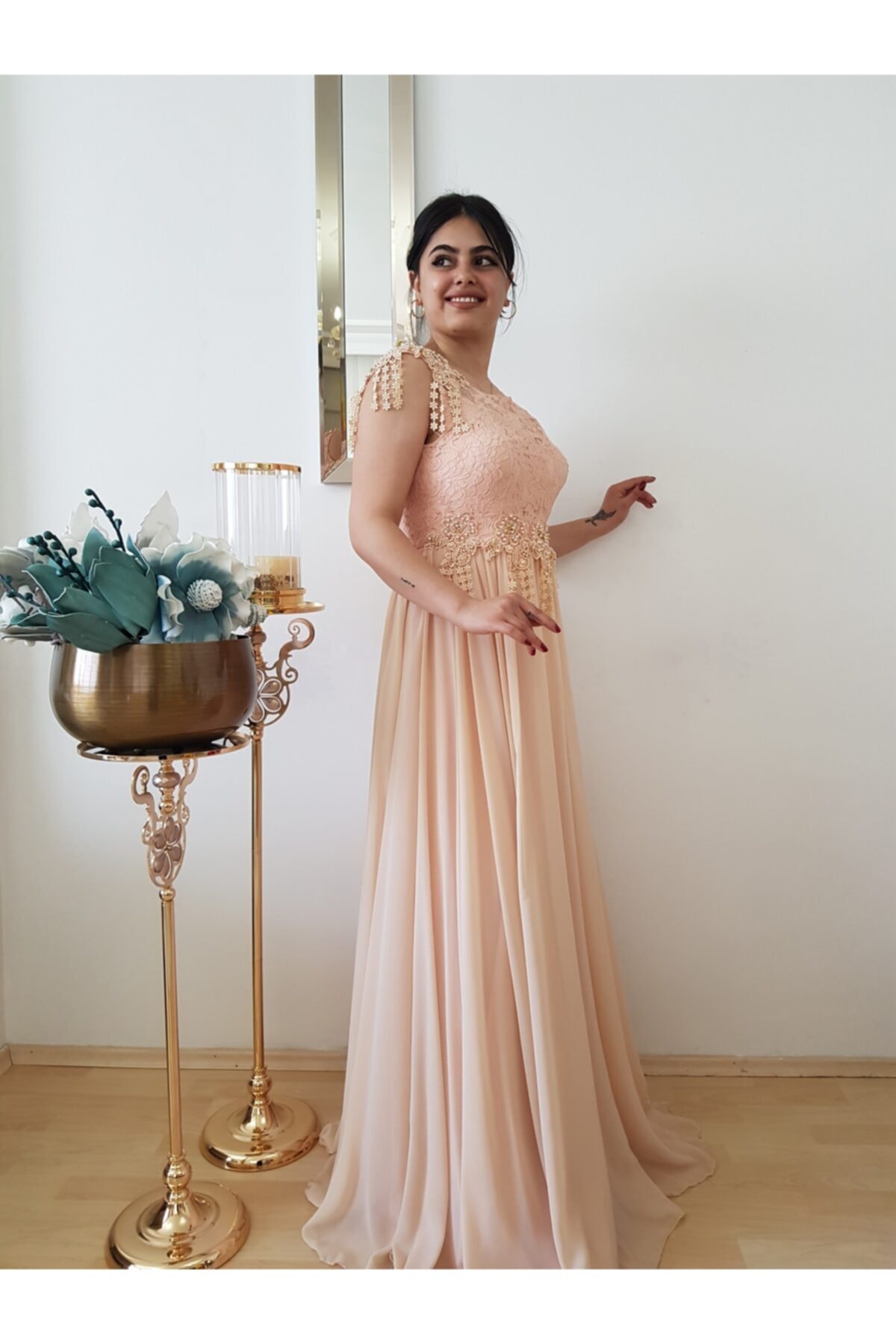 Kadın Pudra Şifon Abiye Elbise Kadın Pudra Şifon Abiye Elbise MRT00000099 38
