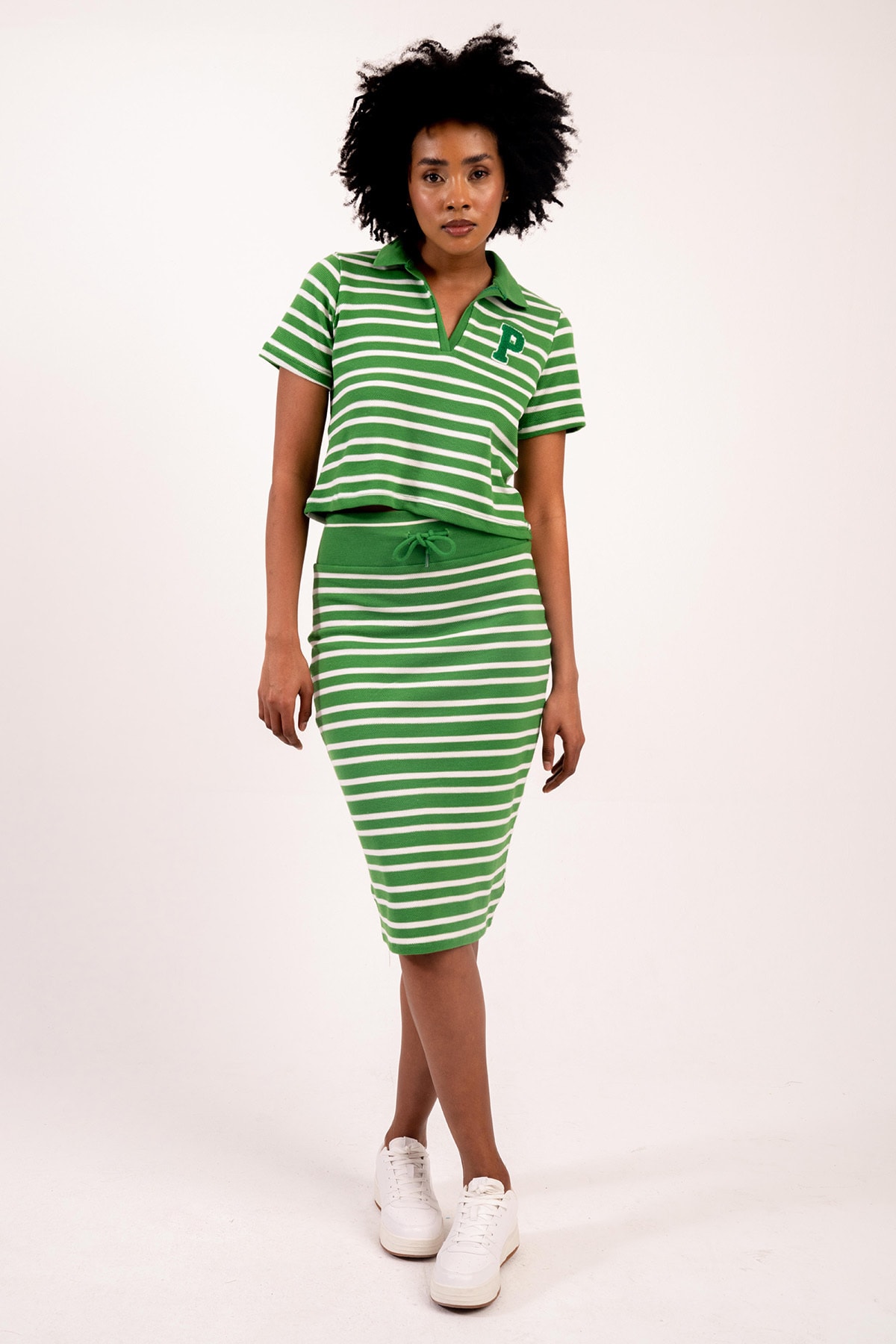 Renkli Çizgili Polo Yaka Kısa Kol Kadın Triko Renkli Çizgili Polo Yaka Kısa Kol Kadın Triko 22-23Y-P146 L