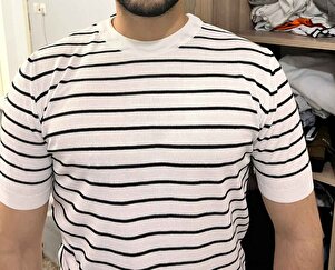 Erkek Mat Beyaz Kısa Kollu Fitilli Akrilik-Pamuk Karışımlı Triko T-Shirt Erkek Mat Beyaz Kısa Kollu Fitilli Akrilik-Pamuk Karışımlı Triko T-Shirt TC00420 XL