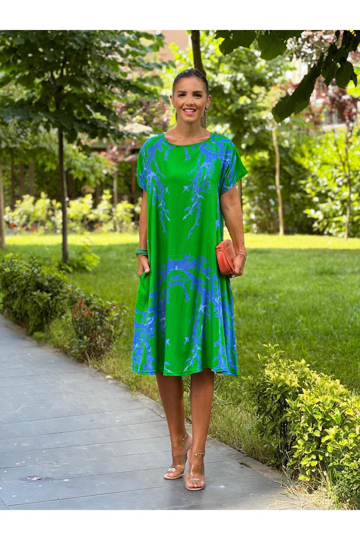 Yeşil Renk Deniz Desenli Elbise Yeşil Renk Deniz Desenli Elbise 48-50