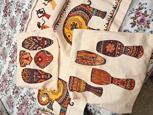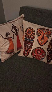 Afrika Temalı Fil Ve Kadın Desenli Turuncu Krem Dijital Baskılı 4'lü Kırlent Kılıfı Ve Runner Set Afrika Temalı Fil Ve Kadın Desenli Turuncu Krem Dijital Baskılı 4'lü Kırlent Kılıfı Ve Runner Set RNR-KRL-1616 43 x 43
