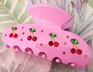 Taşlı Kiraz Pembe Mandal Toka 8 Cm | Yüksek Kalite Asetat Materyal Taşlı Kiraz Pembe Mandal Toka 8 Cm | Yüksek Kalite Asetat Materyal RL-HAİR CLİPS-39 تک سایز