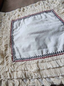 Dört Kenar Püsküllü Keten Krem Kırlent Kırlent Kılıfı43x43][ Dört Kenar Püsküllü Keten Krem Kırlent Kırlent Kılıfı43x43][ HSNTSM-11 43 x 43