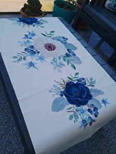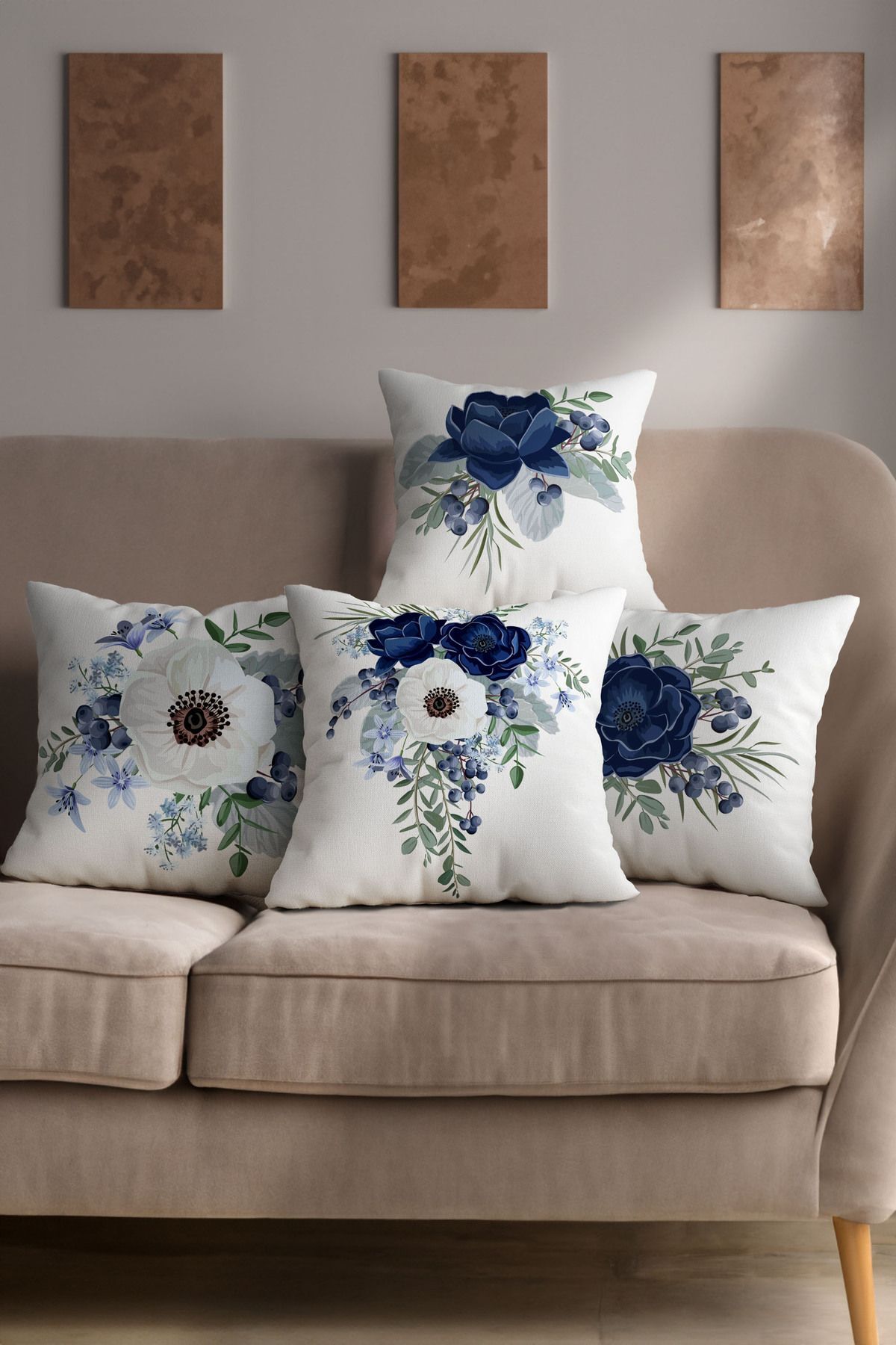 Mavi Çiçek Desenli Doğa Temalı Dijital Baskılı 4'lü Kırlent Kılıfı ve Runner Set Mavi Çiçek Desenli Doğa Temalı Dijital Baskılı 4'lü Kırlent Kılıfı ve Runner Set MVCCK 43 x 43