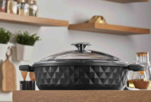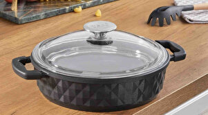 Bella Cam Kapak Döküm Basık Tencere 28 Cm Bella Cam Kapak Döküm Basık Tencere 28 Cm TAC-3880 تک سایز