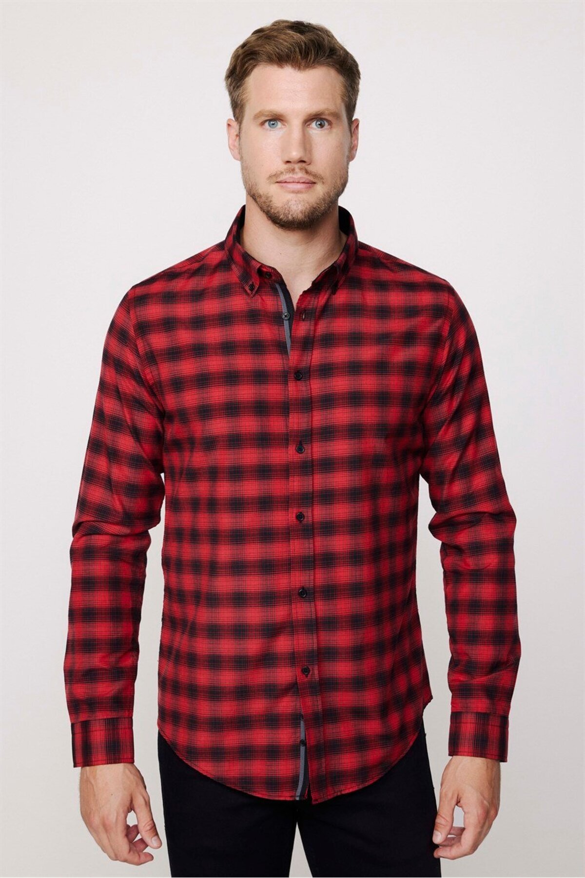 Erkek Slim Fit Dar Kesim Uzun Kollu Pamuklu Kolay Ütü Kareli Düğmeli Yaka Gömlek Erkek Slim Fit Dar Kesim Uzun Kollu Pamuklu Kolay Ütü Kareli Düğmeli Yaka Gömlek DR220113-210 2XL