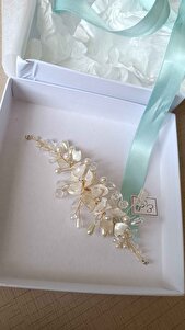 beyaz sedef çiçekli gold gelin tacı beyaz sedef çiçekli gold gelin tacı T406 تک سایز