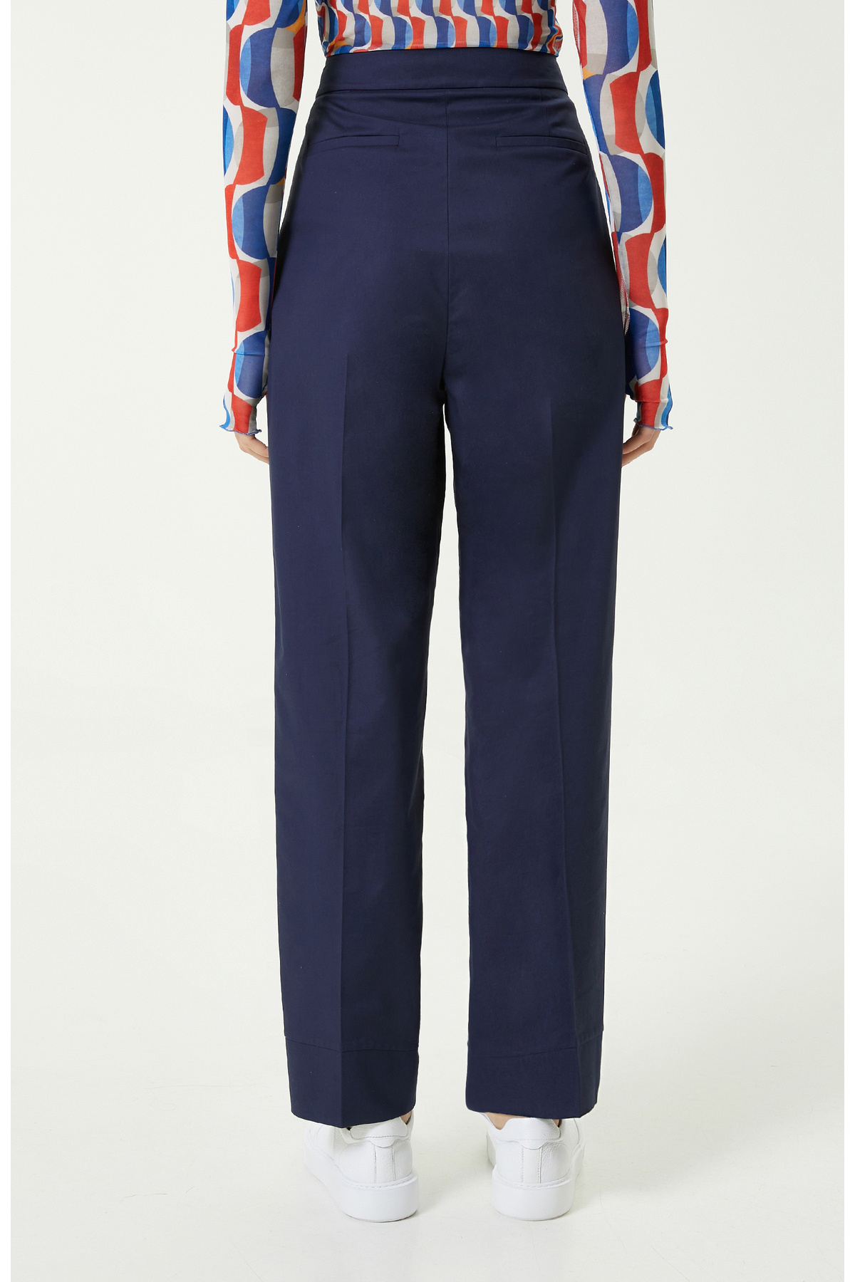 Lacivert Pilili Düz Paça Yüksek Bel Pantolon Lacivert Pilili Düz Paça Yüksek Bel Pantolon 1088242 44