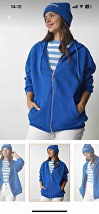 Kadın Mavi Kapüşonlu Fermuarlı Oversize Sweatshirt UB00124 Kadın Mavi Kapüşonlu Fermuarlı Oversize Sweatshirt UB00124 40