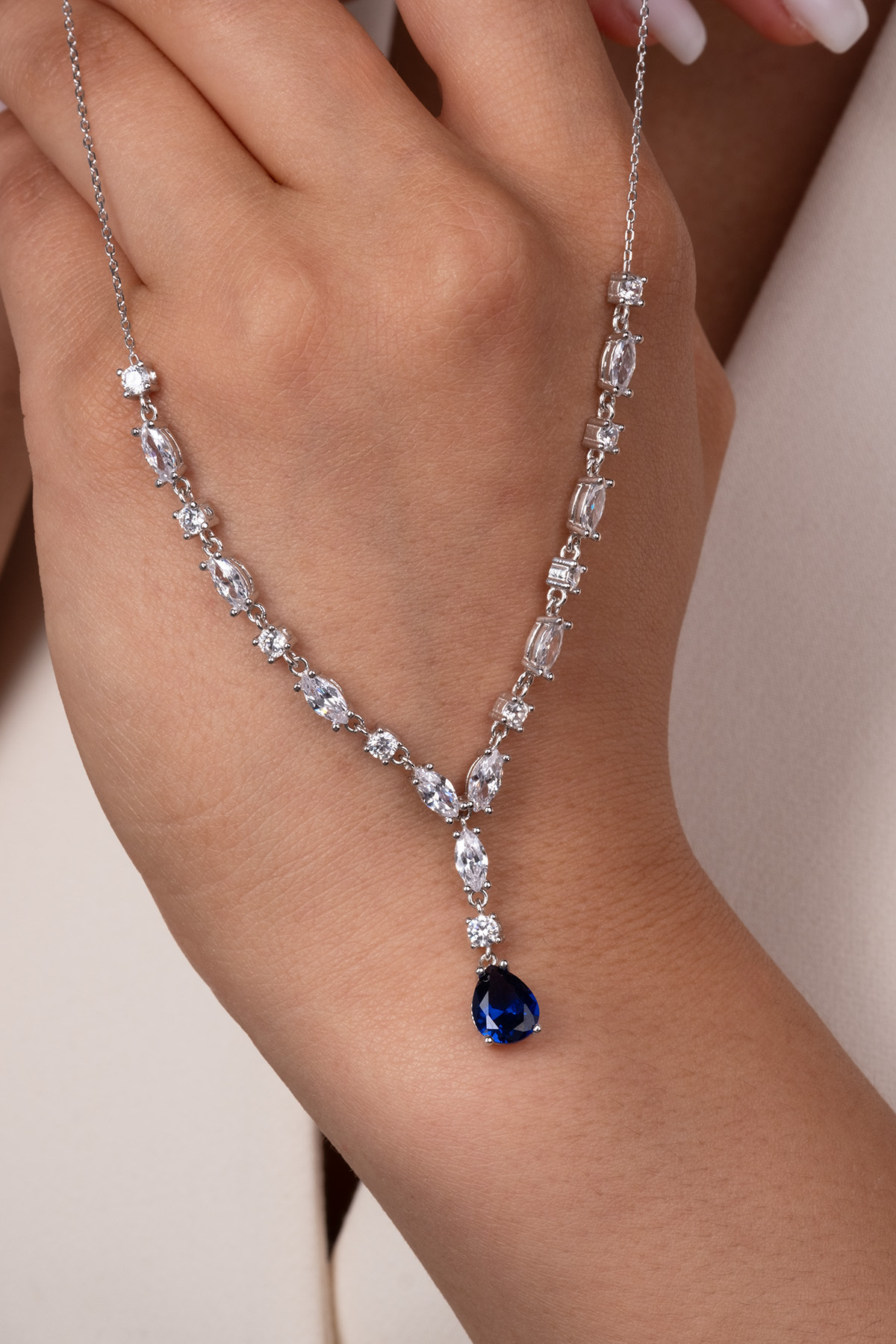 Tasarım Oval Safir Renk Taşlı Kolye Tasarım Oval Safir Renk Taşlı Kolye Brsl0241 تک سایز