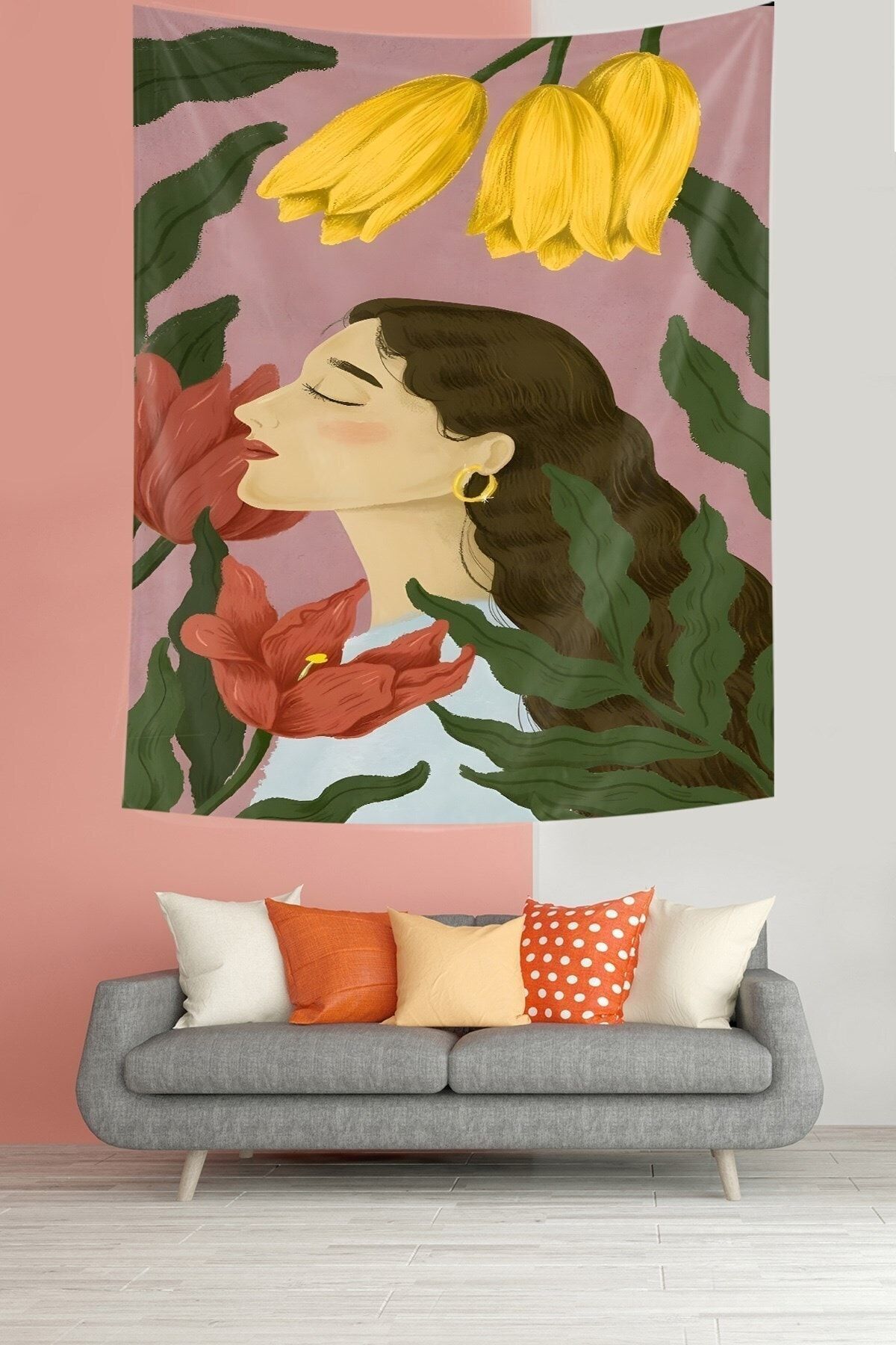 Huzura Ermiş Çiçekli Kız Leke Tutmaz Kumaş Duvar Örtüsü Duvar Halısı Tapestry Huzura Ermiş Çiçekli Kız Leke Tutmaz Kumaş Duvar Örtüsü Duvar Halısı Tapestry PNTRS7 140 x 230