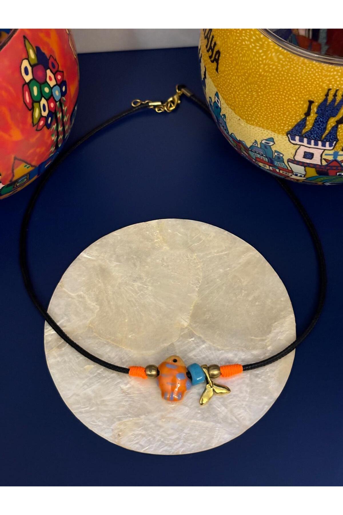 Otantik Etnik Bohem Turuncu Seramik Balık ve Mavi Cam Boncuklu Balık Kuyruğu Kolye Otantik Etnik Bohem Turuncu Seramik Balık ve Mavi Cam Boncuklu Balık Kuyruğu Kolye KLY-OT-85 تک سایز