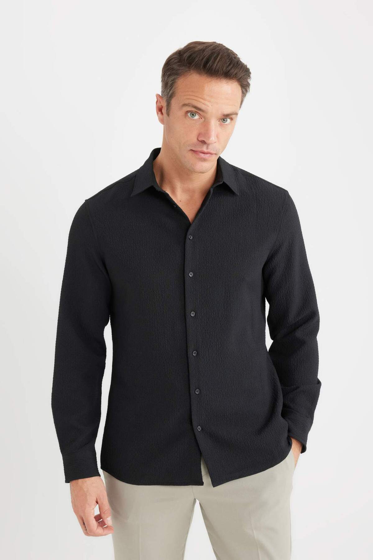 Basic Kısa Kollu Gömlek Klasik Yaka Düğmeli Pamuklu Basic Kısa Kollu Gömlek Klasik Yaka Düğmeli Pamuklu 3SAM60004HK 2XL