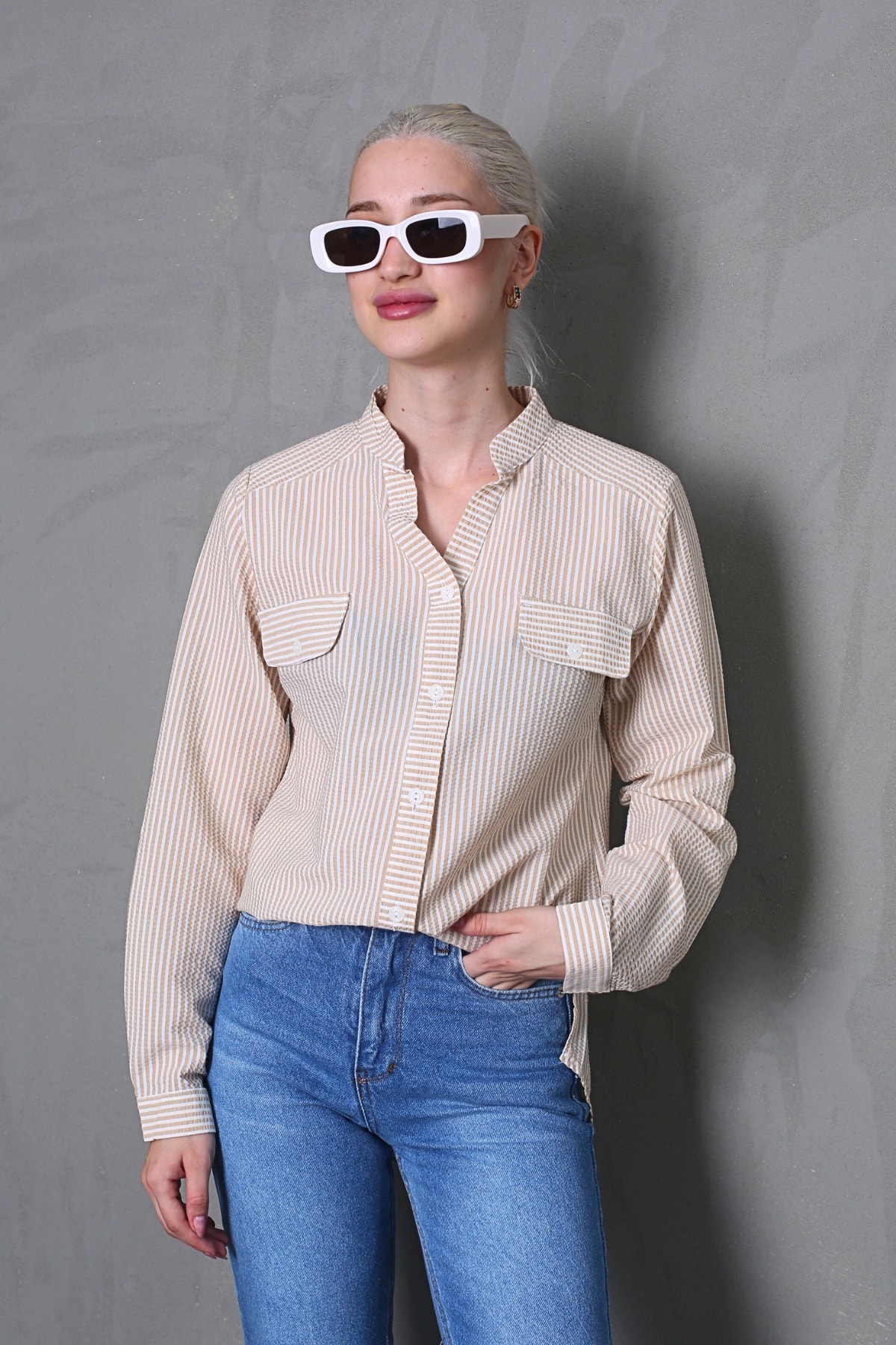 Siyah Çizgili Gofre Kumaş Kadın Oversize Gömlek MG1666 Siyah Çizgili Gofre Kumaş Kadın Oversize Gömlek MG1666 42