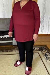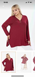 BORDO YAKA FERMUARLI UZUNOL BLUZ BORDO YAKA FERMUARLI UZUNOL BLUZ HB00536 58