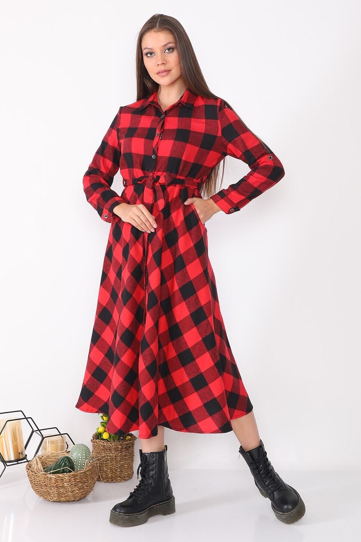 A Kesim Gömlek Yaka Kareli Flanel Mini Uzun Kollu %100 Pamuk Elbise A Kesim Gömlek Yaka Kareli Flanel Mini Uzun Kollu %100 Pamuk Elbise X9818AZ22AU 44