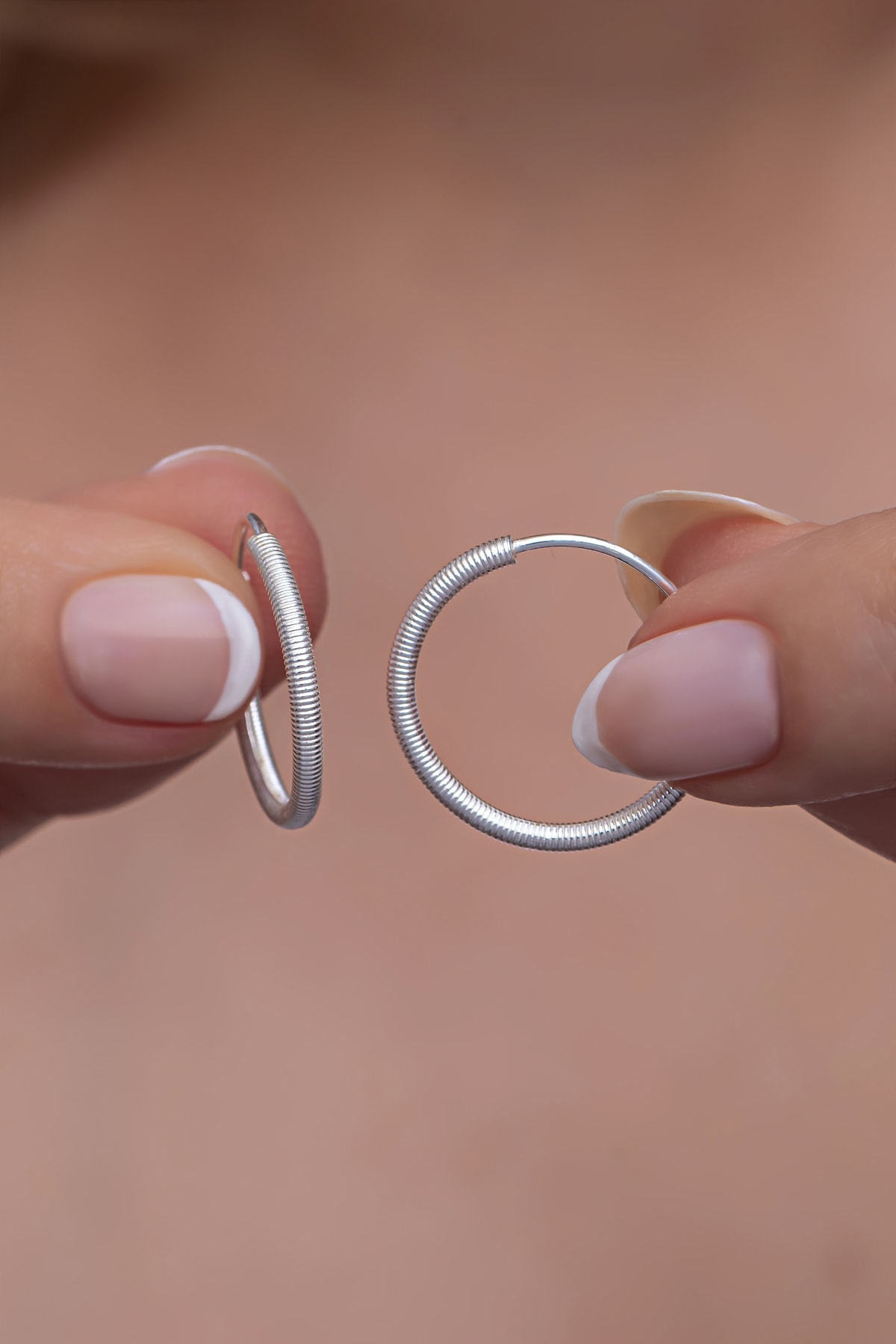 925 Ayar Gümüş Dalgalı Çizgili Tasarım 20 Mm Halka Küpe 925 Ayar Gümüş Dalgalı Çizgili Tasarım 20 Mm Halka Küpe NRZ999167 تک سایز