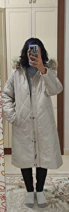 Kadın Kapüşonlu Kareli Uzun Kapitone Kaban Bej Kadın Kapüşonlu Kareli Uzun Kapitone Kaban Bej 23408 2