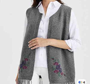 Kadın Eteği Çiçekli Püsküllü Yelek Füme Kadın Eteği Çiçekli Püsküllü Yelek Füme 23225 XL