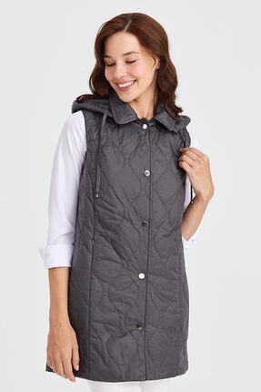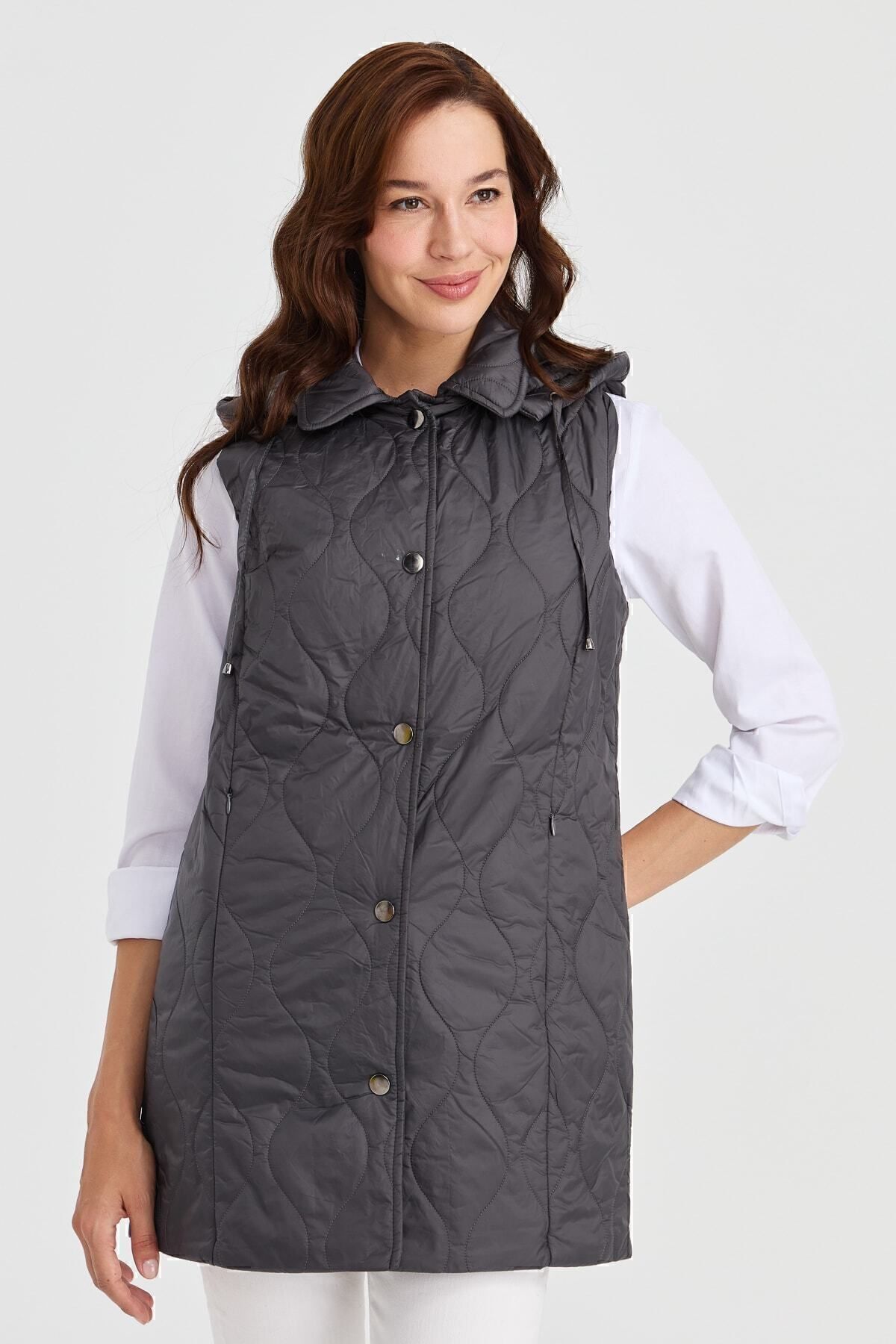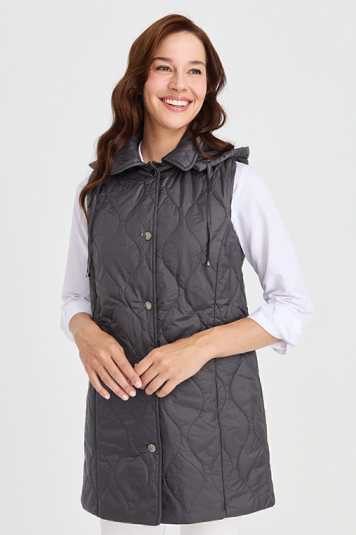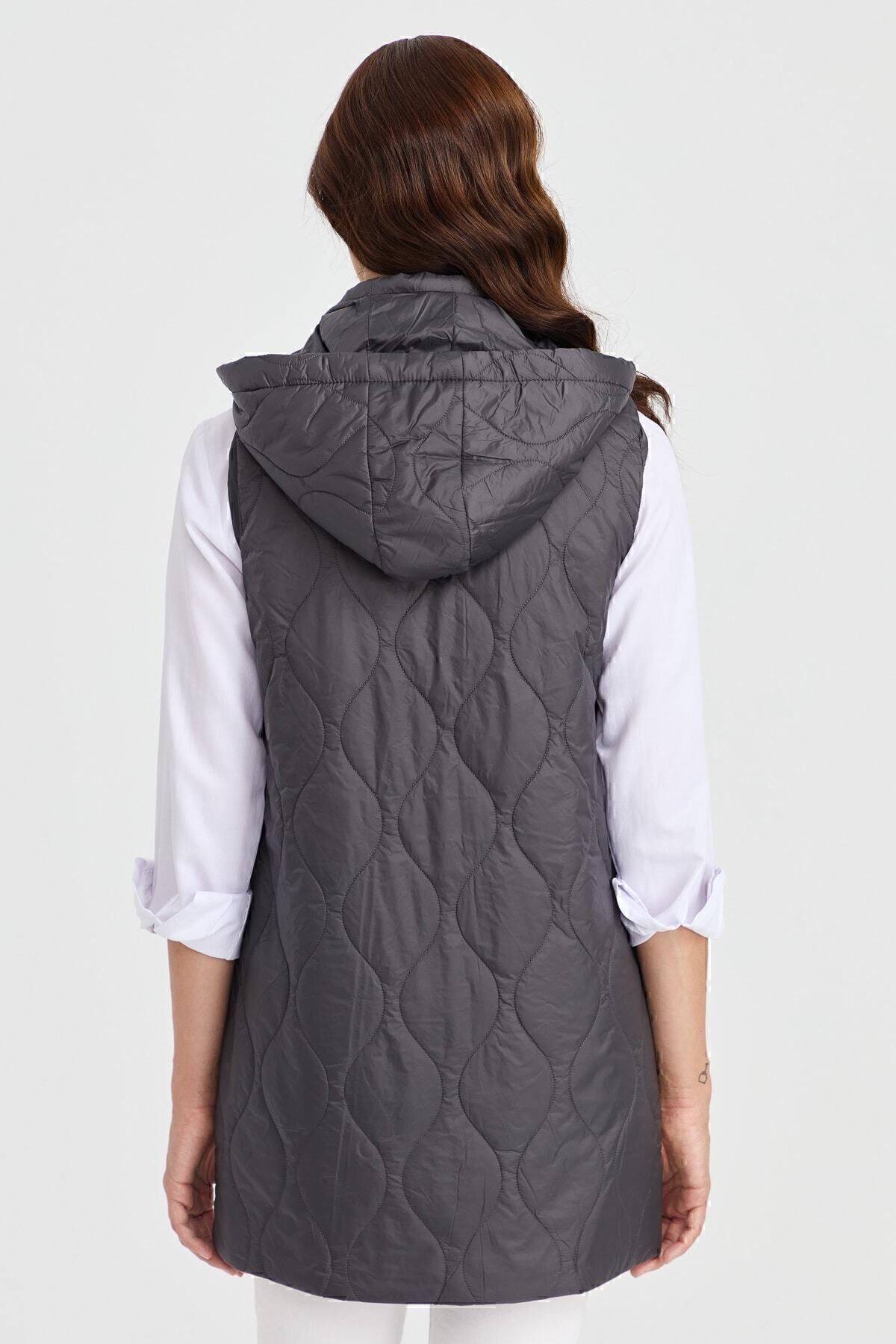 Kadın Kapüşonlu Kapitone Yelek Gri Kadın Kapüşonlu Kapitone Yelek Gri 23406 5