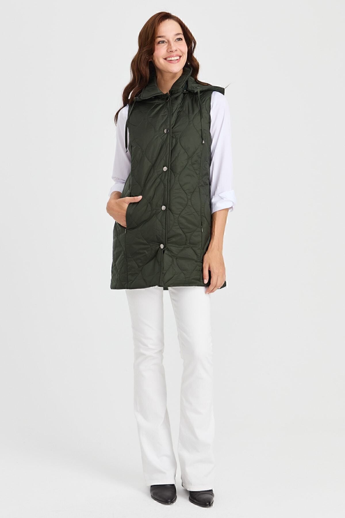 Kadın Kapüşonlu Kapitone Yelek Bej Kadın Kapüşonlu Kapitone Yelek Bej 23406 2XL