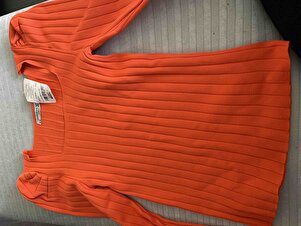 Kadın Oranj Kare Yaka Fitilli Triko Bluz YY00159 Kadın Oranj Kare Yaka Fitilli Triko Bluz YY00159 S/M